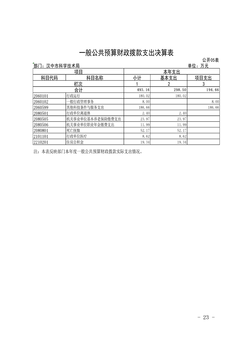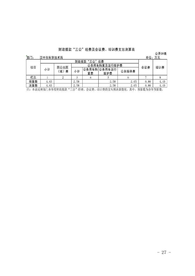 汉中市科技局(机关)2024年部门决算公开说明