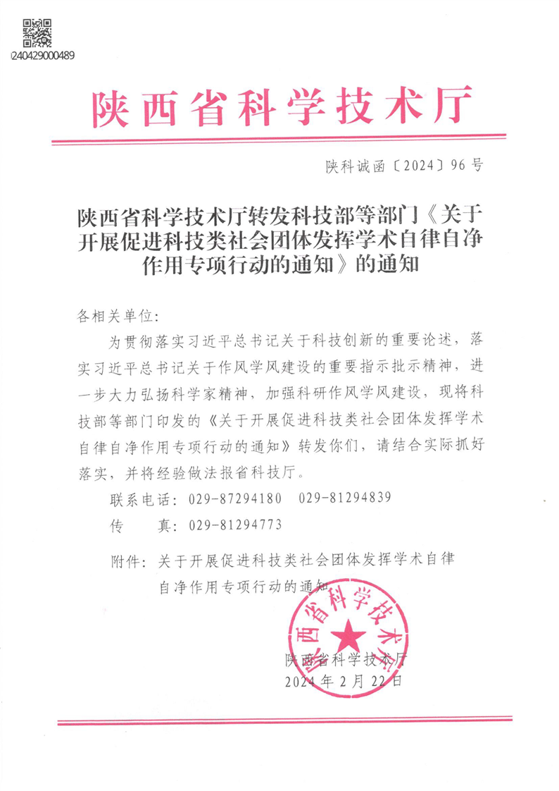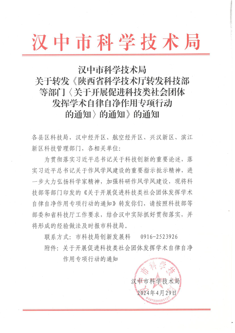 关于转发《陕西省科学技术厅转发科技部等部门〈关于开展促进科技类社会团体发挥学术自律自净作用专项行动的通知〉的通知》的通知